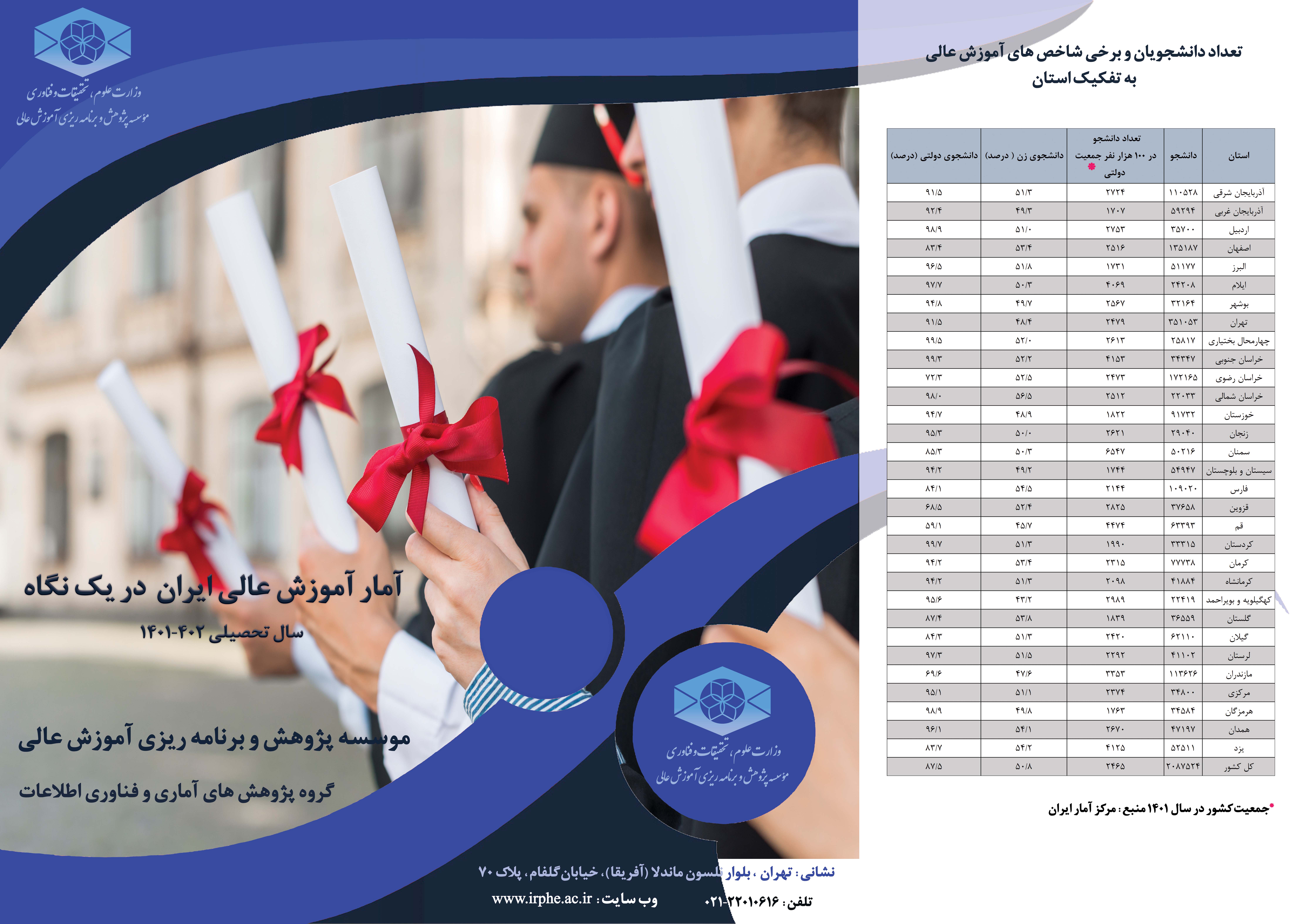 بروشور آمار آموزش عالی در یک نگاه سال تحصیلی 1402-1401